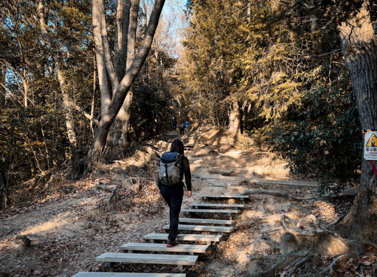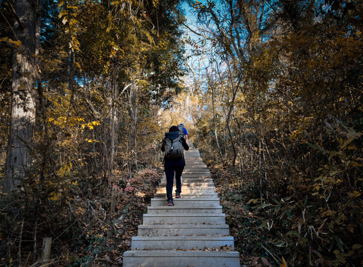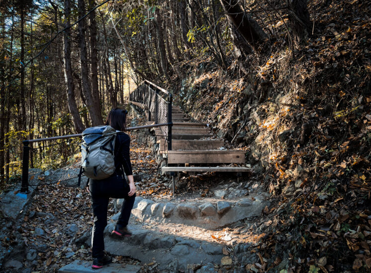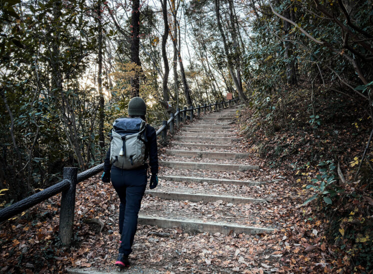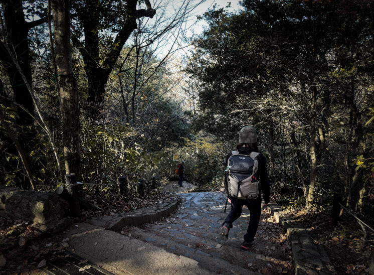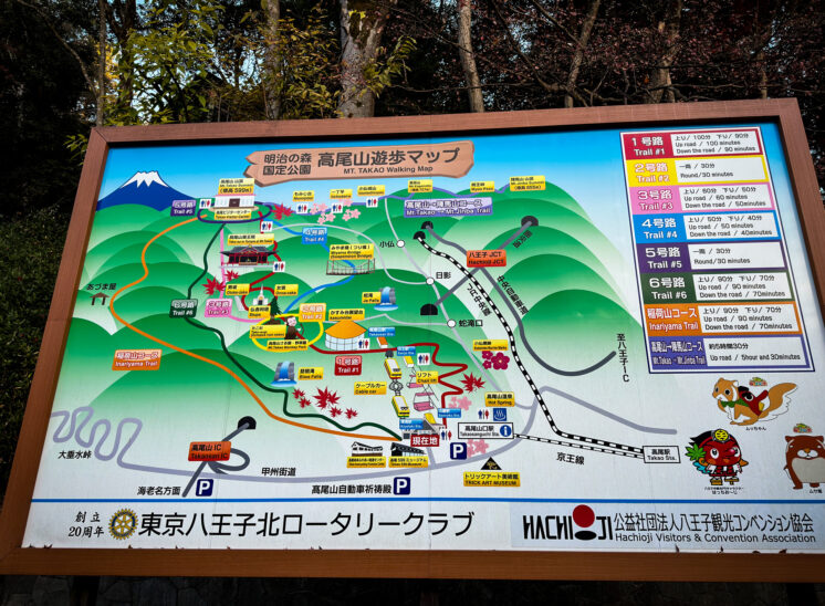 高尾山(たかおさん)は、東京都八王子市にある標高599メートルの山で、明治の森高尾国定公園及び東京都立高尾陣場自然公園に位置しています。東京都心から近く大変アクセスが良く、年間を通じて多くの観光客や登山者が訪れ、2007年にミシュラン観光ガイドで三つ星に認定されたことをきっかけに登山客の数は増え、その数は年間300万人とも言われ、世界一の登山者数を誇ります。また展望台からは遮る山がないので都心の街並みを一望することができ、西側は丹沢山地や富士山を見渡せて、冬至の前後数日間には富士山の真上に太陽が沈むダイヤモンド富士を見ることができます。高尾山は東京近郊の行楽地として有名ですが、元来は修験道の霊場であり、奈良時代の高僧である行基が744年に開山したと言われています。