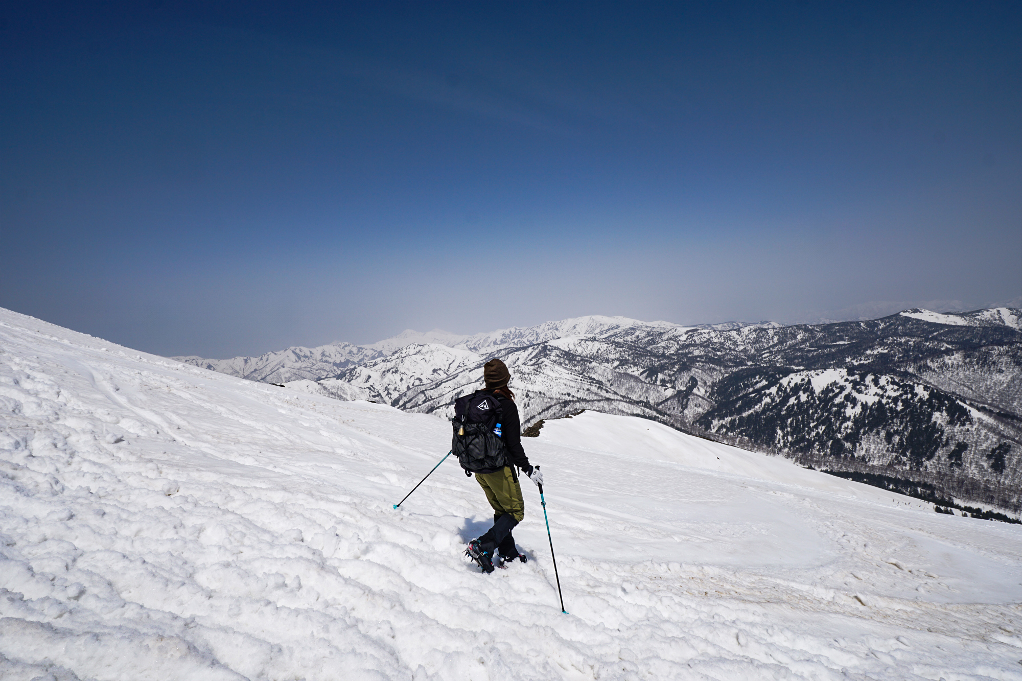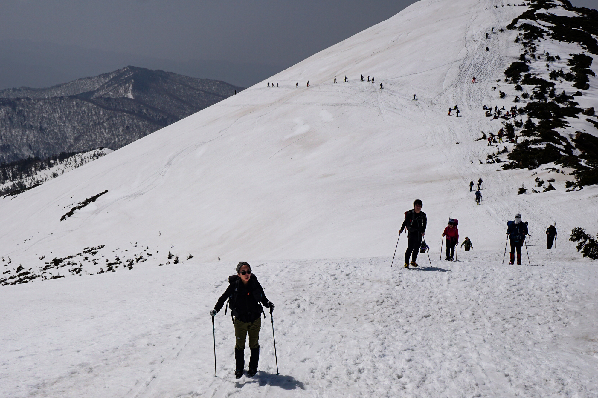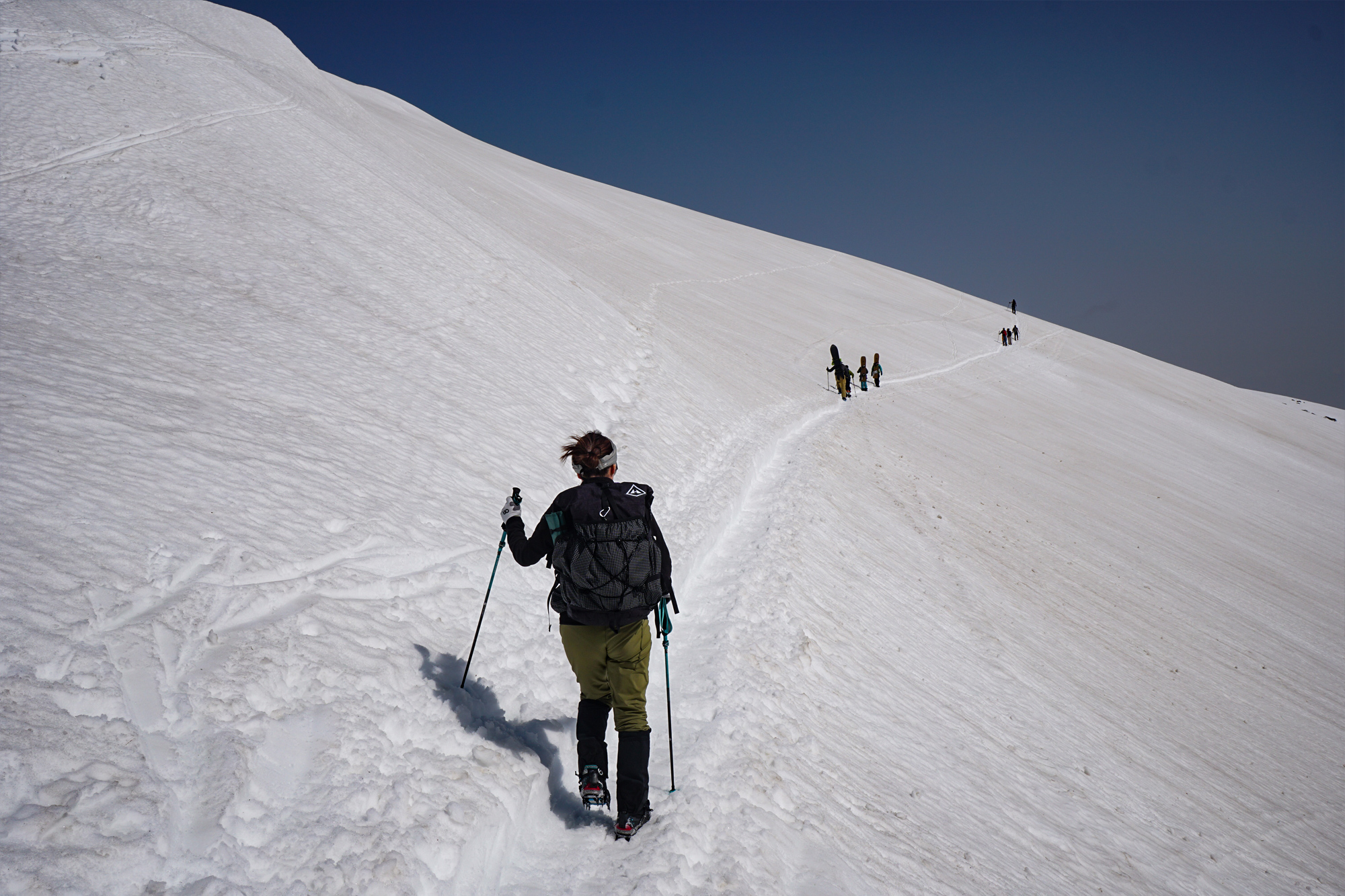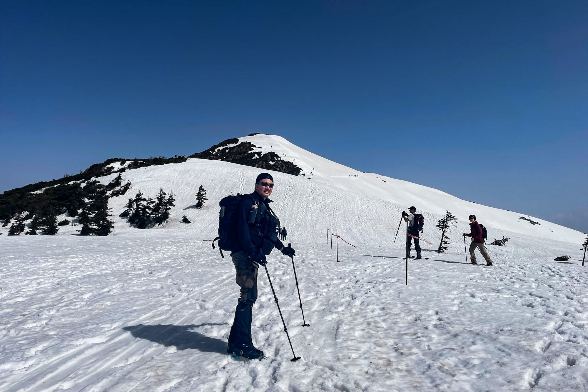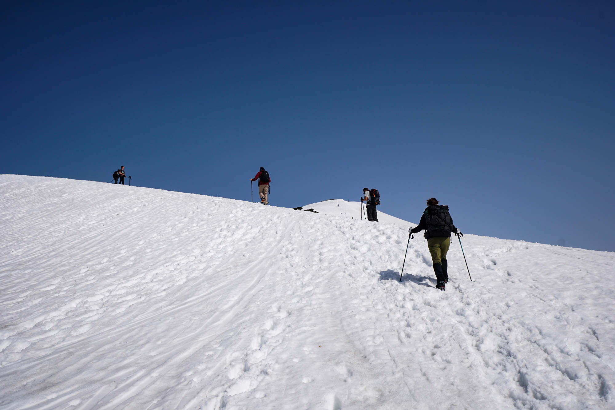また、ピッケルを出すような急斜面は皆無なのでストックがあると良い感じです。