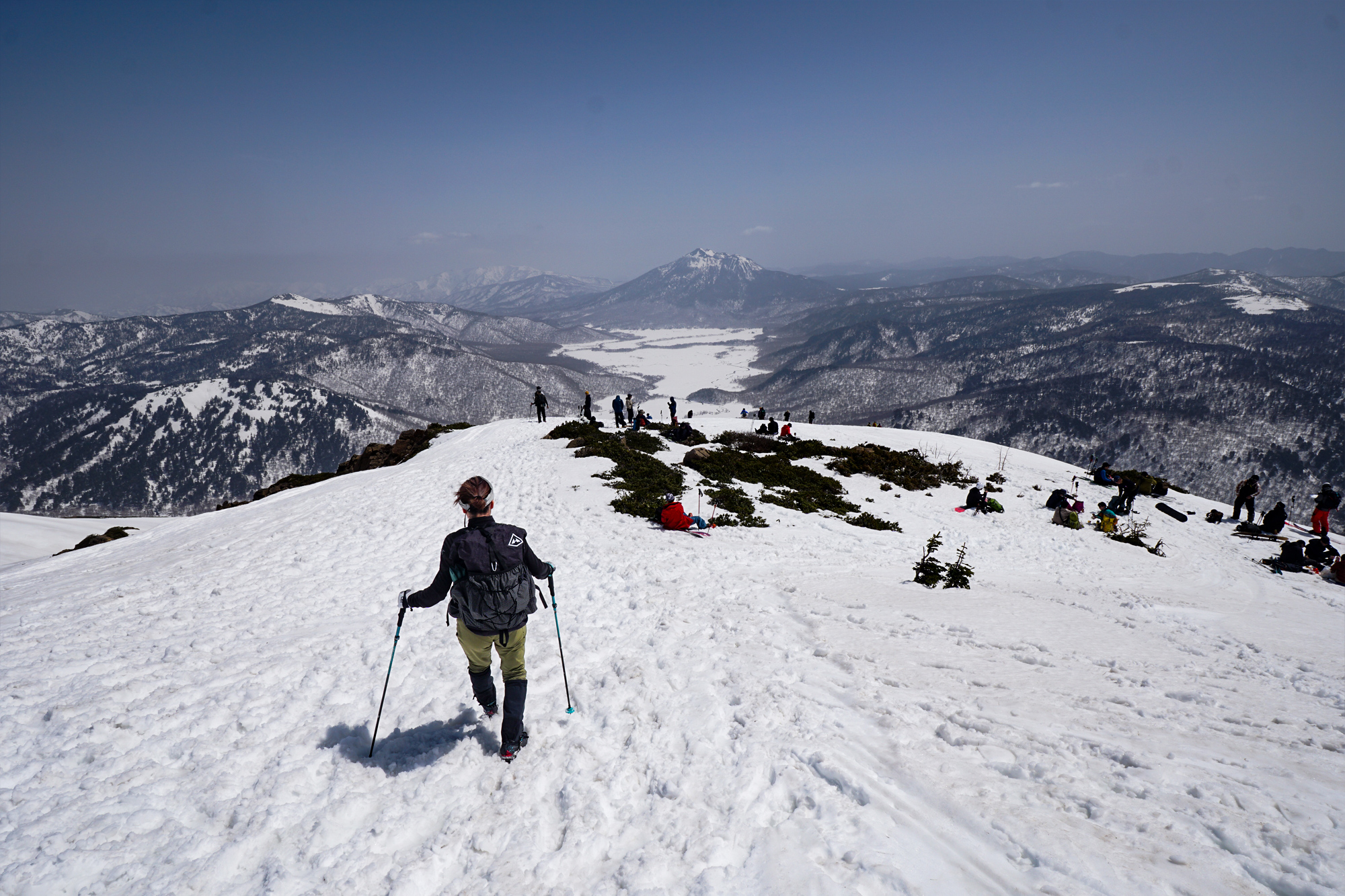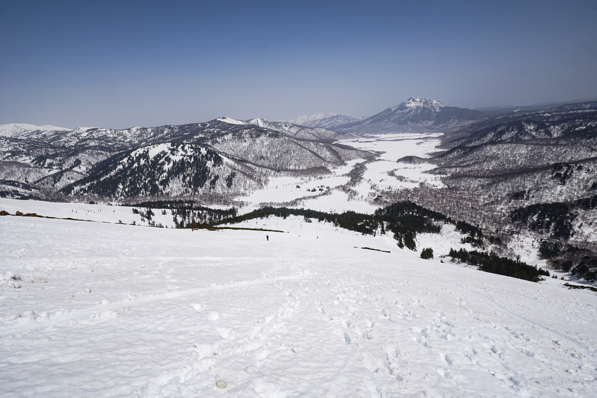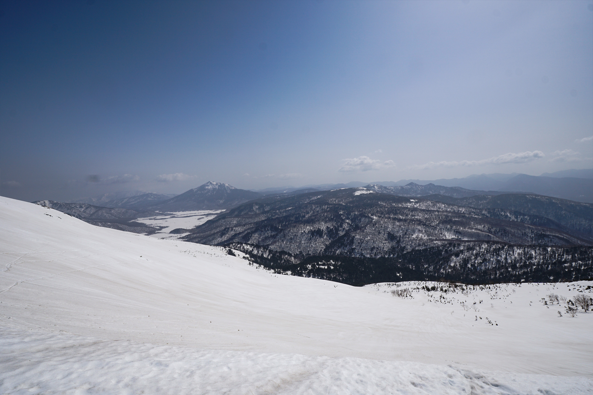 例年より多い雪の中、眼下に広がる真っ白な尾瀬ヶ原を眺めながらハイキングを楽しむことができました。