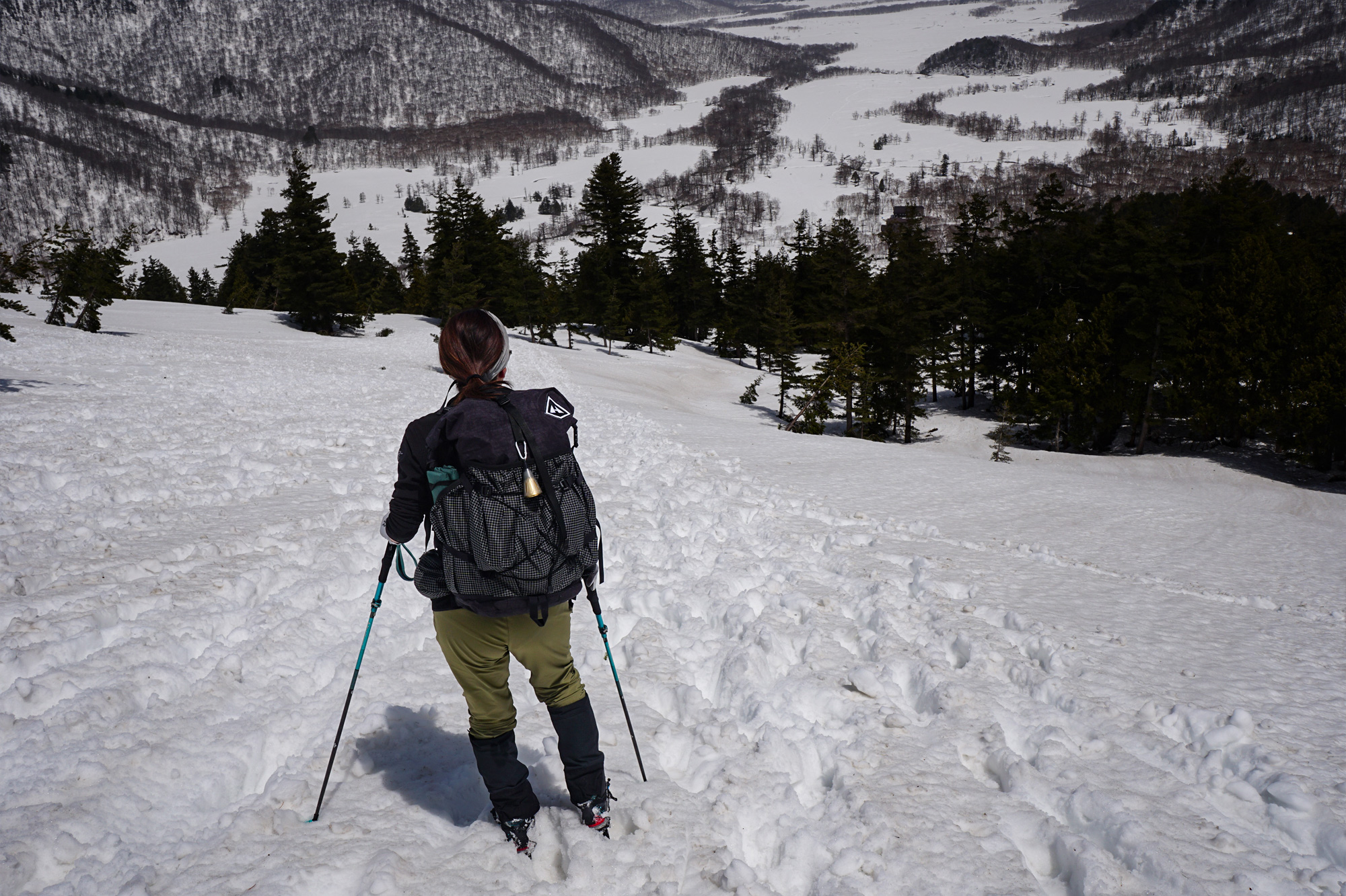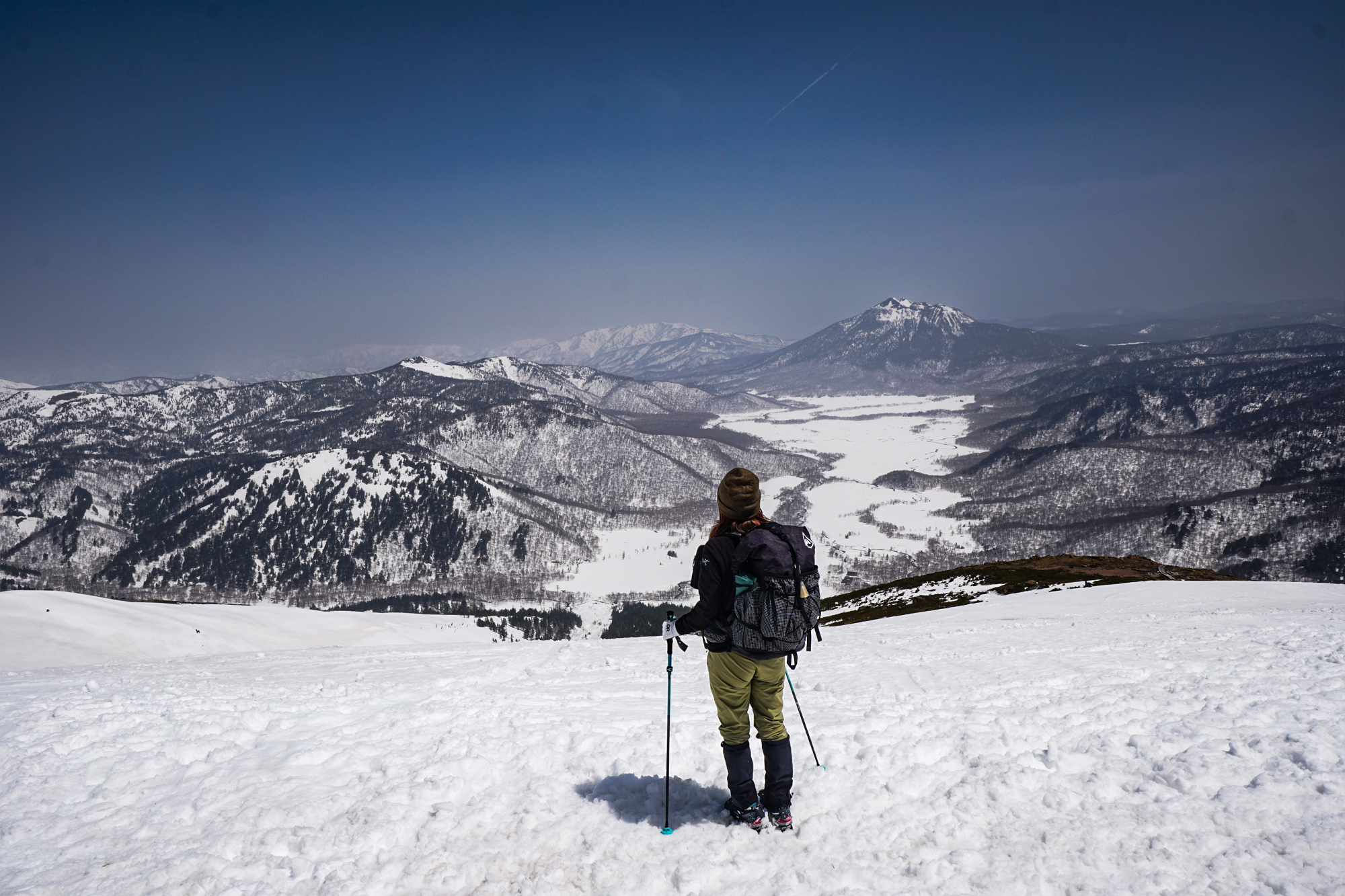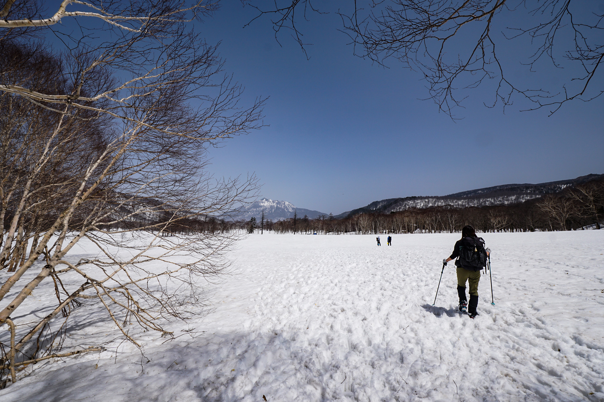 例年より多い雪の中、眼下に広がる真っ白な尾瀬ヶ原を眺めながらハイキングを楽しむことができました。