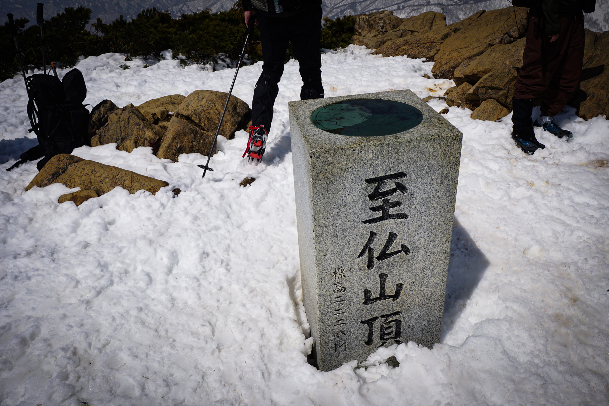 例年では雪が溶けて夏道が出ている場所もあるようで、脱着の容易なチェーンアイゼンを勧めている方もいますが、今回は前情報で雪が多いとのことでしたので、私たちは12本アイゼンで歩きました。この辺は事前に調べてから装備を決めると良いかもしれません。