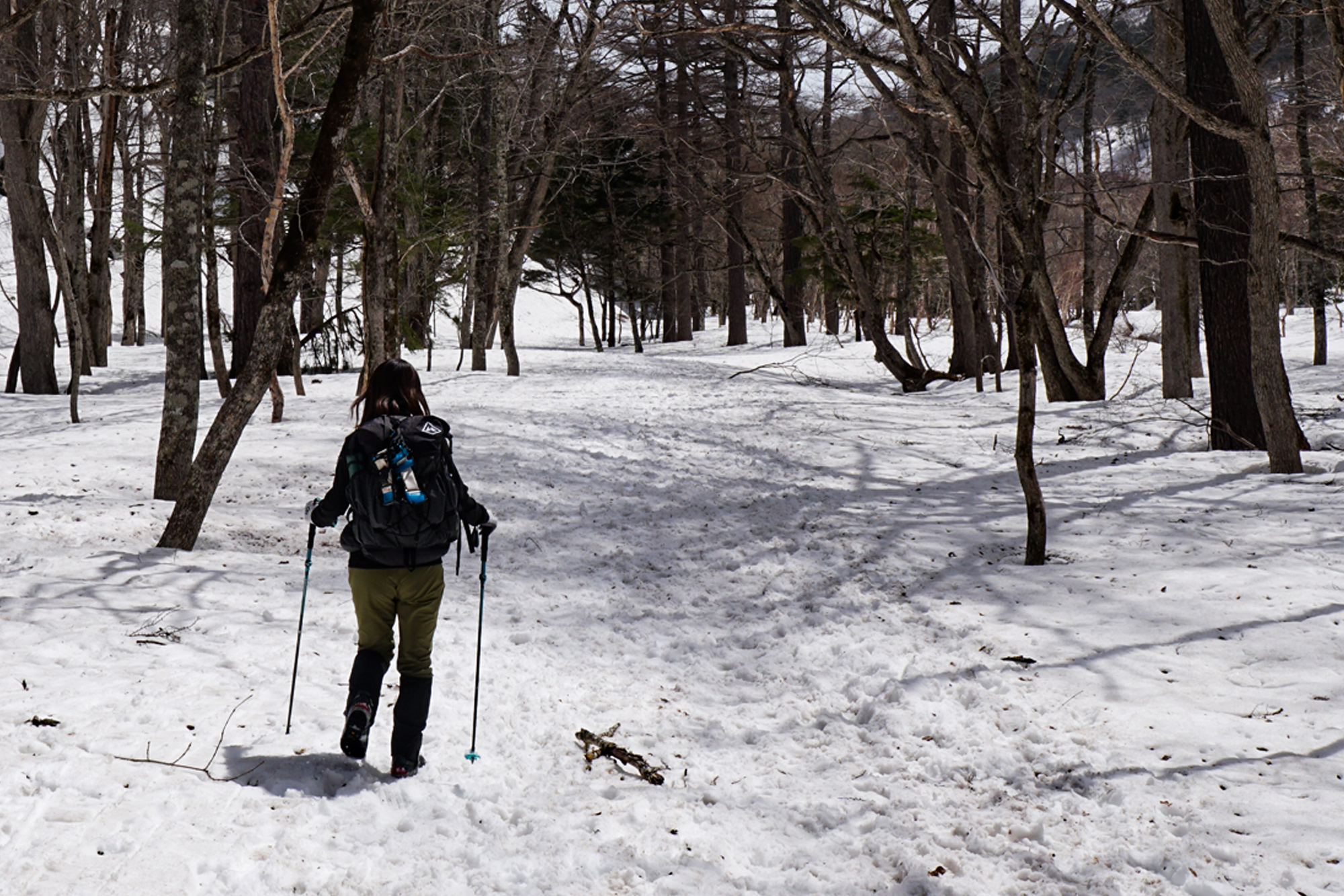 この時間になると雪もだいぶ溶けてきて、ズボズボと沈んで歩き難い。