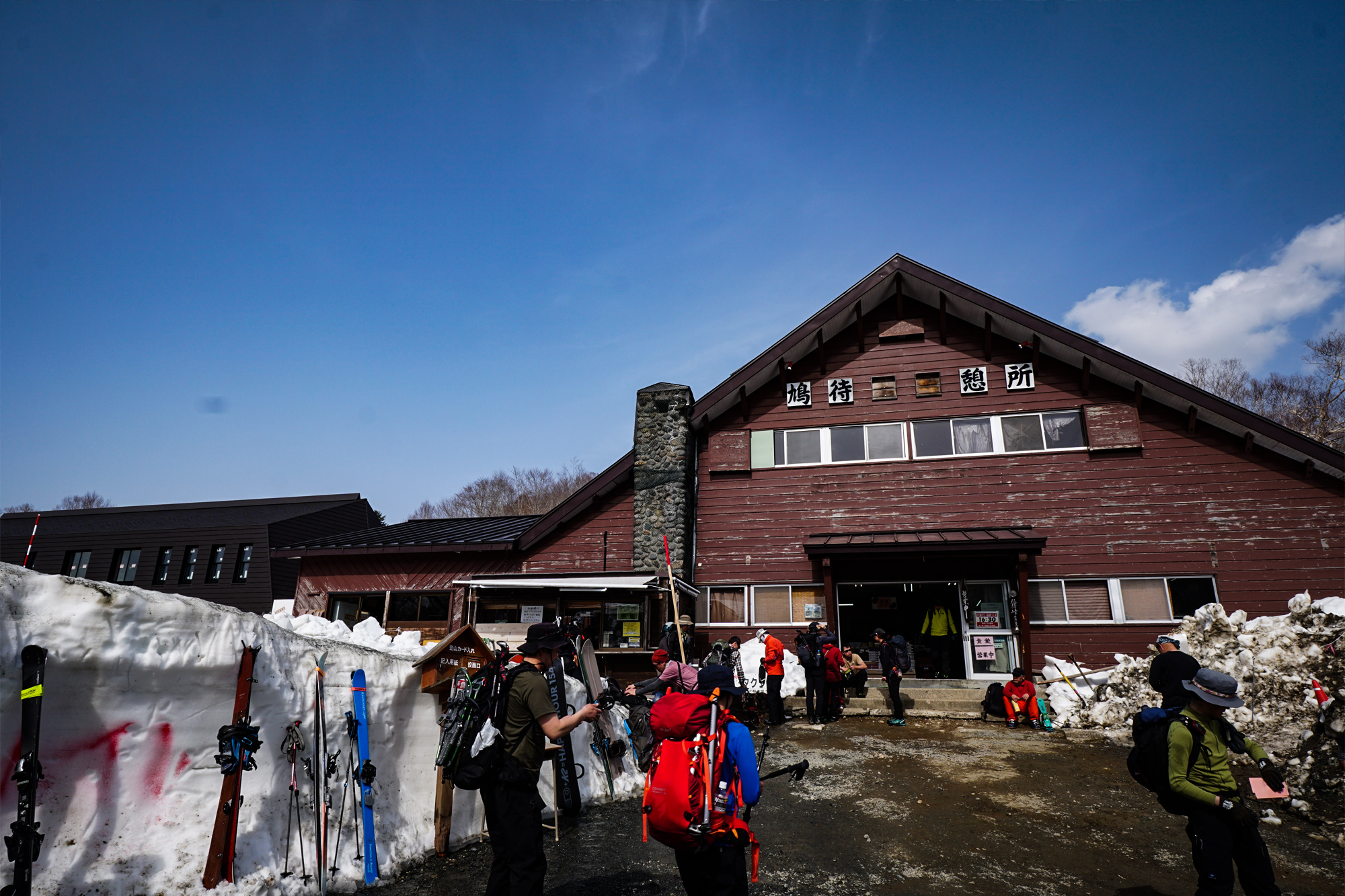 今年は例年よりも多く降った雪の為か、鳩待山荘の周りは雪の壁で覆われてました。