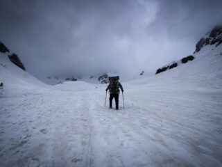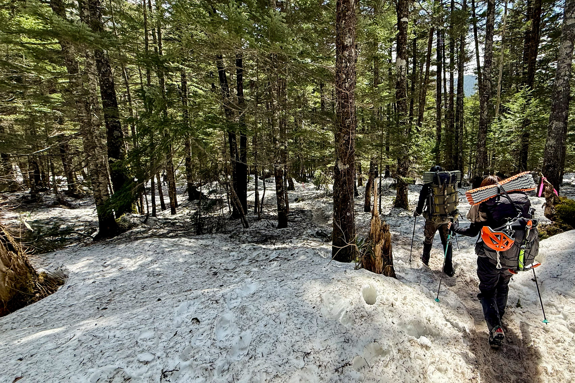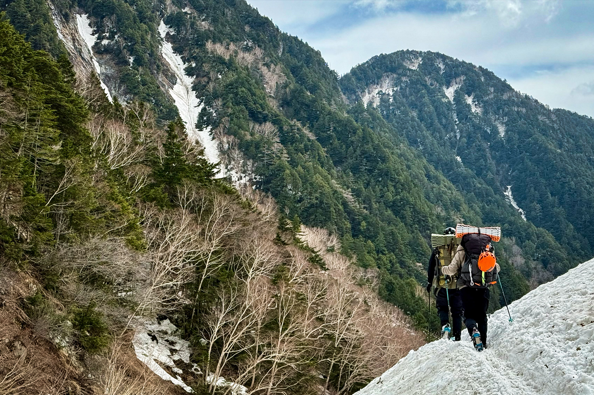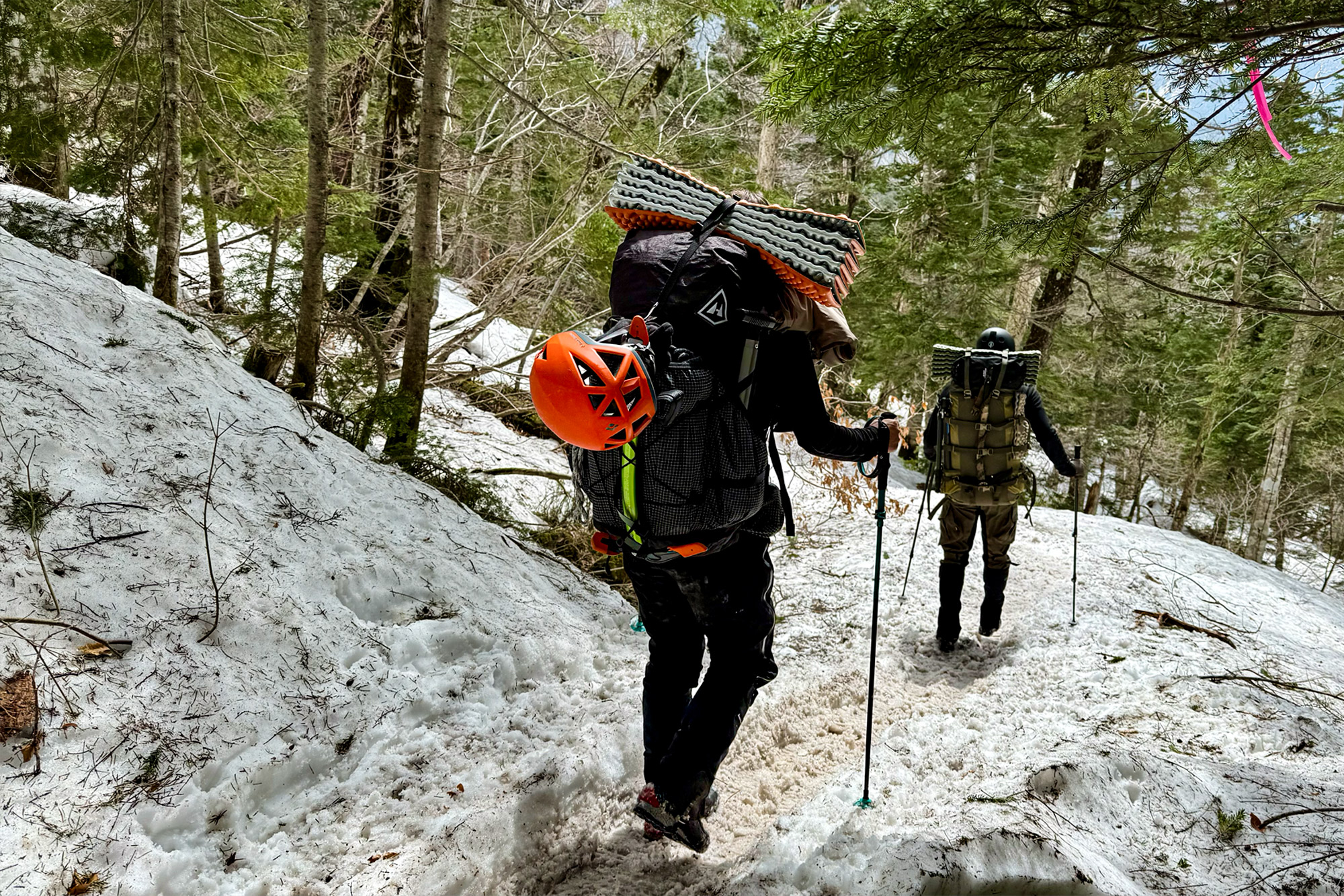 また、今回は厳冬期に使用する冬履ではなく、3シーズン用の登山靴で歩いてみました。