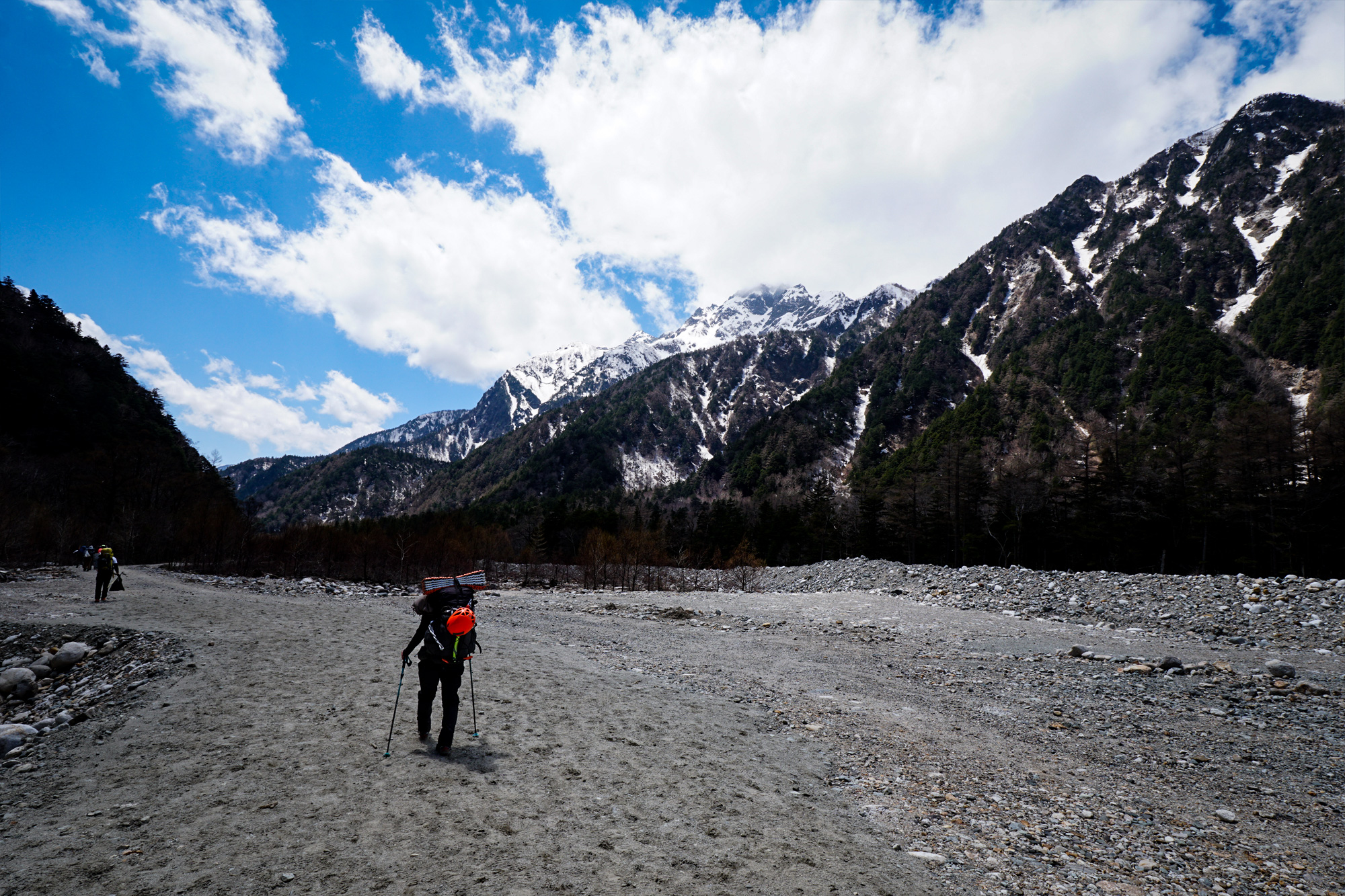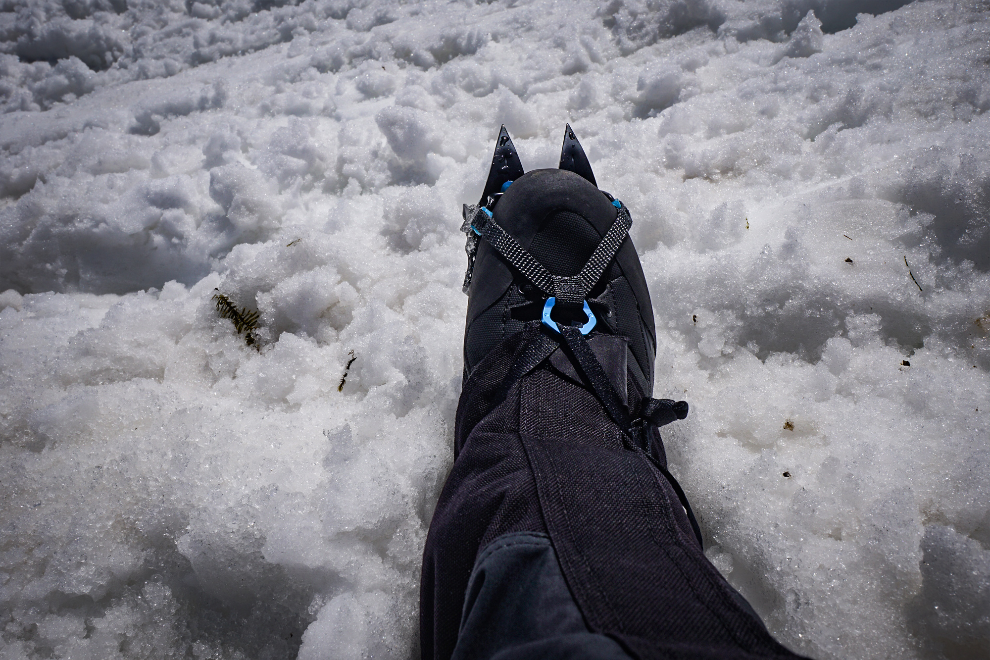 とにかく、上高地から横尾までの移動区間での冬履は苦痛で、人によっては、この区間をトレランシューズで歩き、横尾から冬履に履き替えるという方もいましたが、2kg近い冬履を背負うのもザックが重くなってしまうので、アイゼンが装着できる3シーズン登山靴を探しました。