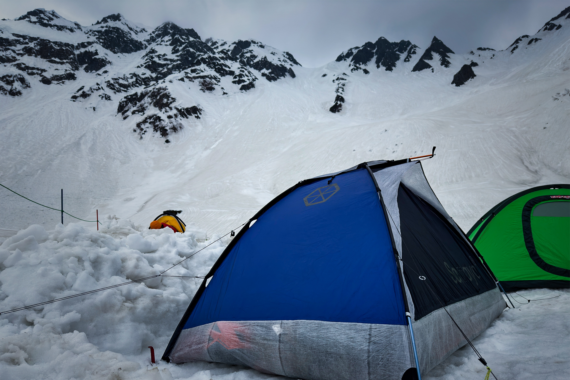 Samaya 2.0は透湿素材を使用して結露がしないシングルウォールテントとのことですが、低温で雨が降りつける環境の中では、テントの外と中との温度差で結露の発生は仕方がないかと思います。ただ、流石アルパインテントとのこともあり、多少の風ではびくともしません。公式サイトによると時速120kmの台風テストをクリアしているとか。